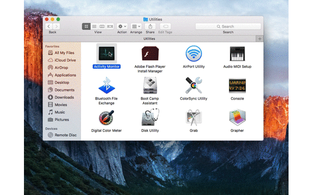 Hoặc bạn có thể mở Finder, chọn Ứng dụng (Applications) > Tiện ích (Utilities) > Activity Monitor.