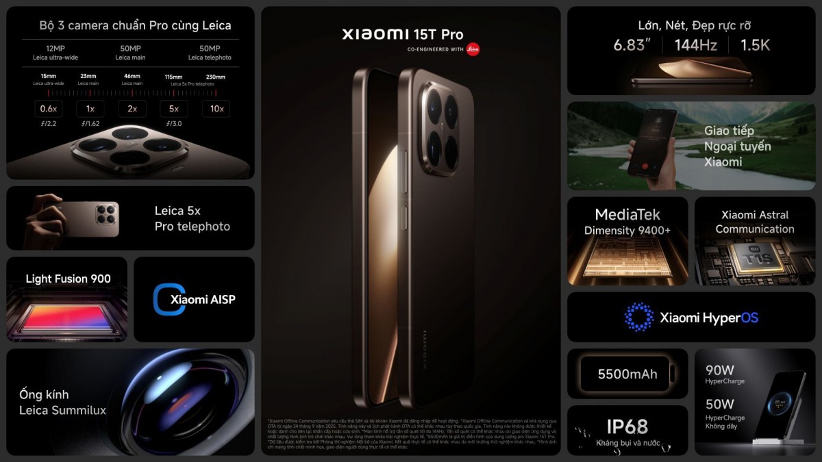 Không chỉ gây ấn tượng với loạt công nghệ mới nổi bật, Xiaomi 15T Series còn sở hữu hệ thống ống kính Leica Summilux, cấu hình mạnh mẽ cùng thiết kế thời thượng.... đưa tên tuổi của 15T Series trở thành một trong những dòng sản phẩm cận cao cấp xuất sắc nhất phân khúc.